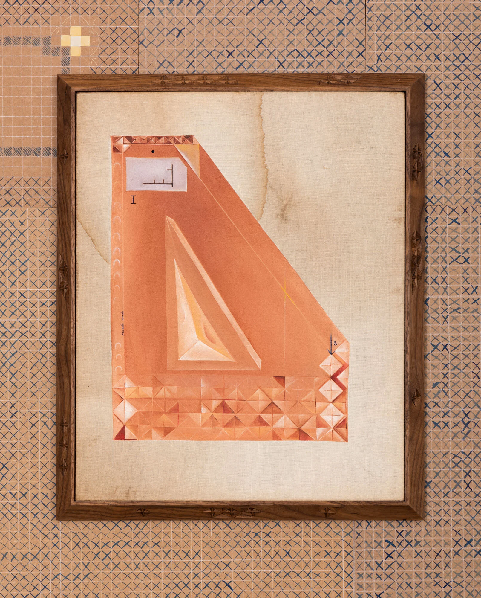 First presented at Art Basel Miami Beach, Cartas al futuro/Letters to the Future is an installation of hand-crafted wood sculptures, oil paintings, and ephemera within a reconstruction of Fernández’s grandfather’s living room in Spain, which doubles as his woodworking studio. Fernández’s grandfather sends his sketches and cardboard studies to her in the U.S. Since he can no longer carve due to deteriorating eyesight, these become proposals for future works which he cannot himself complete. A clock, made by Fernández from one such drawing, is a central reminder of the passage of time and the workings of memory within this recreated space—and of that real place where her grandfather continues to live and work. All sculptures are hand-carved by Fernández in her grandfather’s style. A pervasive inscribed “x” motif fills the booth walls and wooden objects; inherited from her grandfather, it marks a throughline between their shared practices.